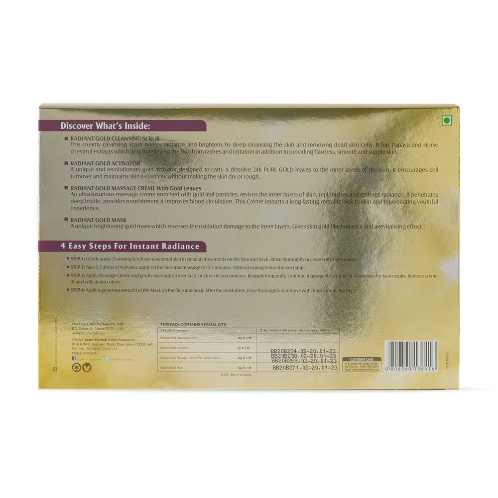 Lotus Herbals Cosmetics Radiant Gold Cellular Glow Salon Grade 4 Facial Kit