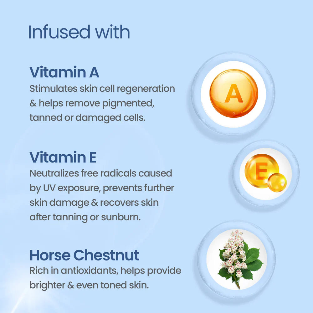 Effectively reduces fresh tan and brightens skin tone |