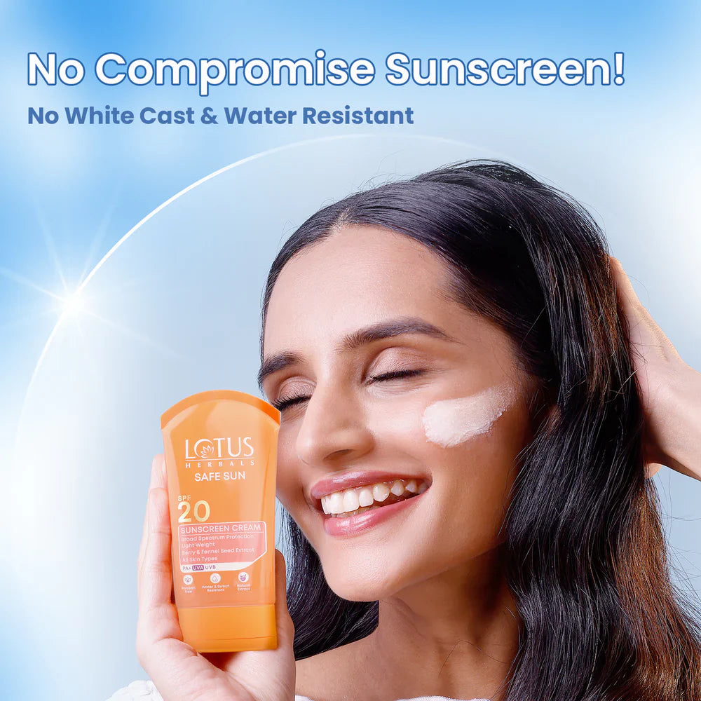 Lotus Herbals Cosmetics Safe Sun Sunscreen Cream SPF 20 PA+ 100g