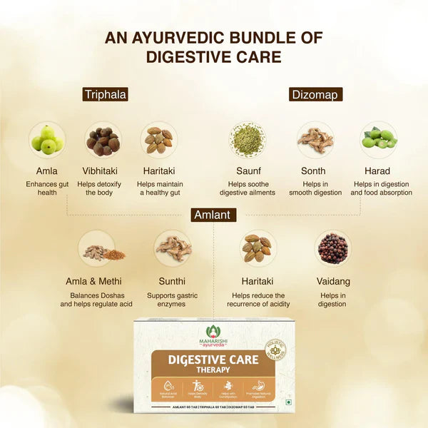 Maharishi Ayurveda Digestive Care Therapy Amlant,Dizomap & Triphala Tablets Combo