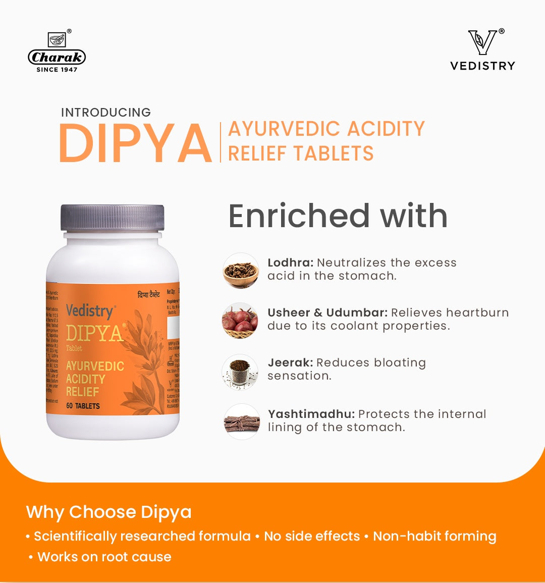 Vedistry Ayurvedic Dipya Acidity Relief 60 Tablet